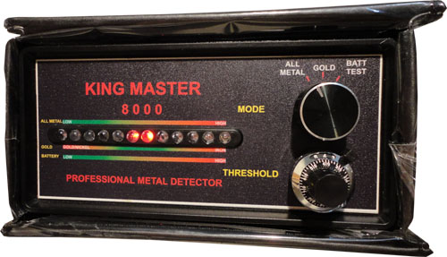 KING MASTER 8000KING MASTER 8000یک فلزیاب پر قدرت با سیستم پالسی حساسیت بالا به انواع فلزات حساس نبودن به آب ، نمک ، خاک و املاح معدنی قابل اطمینان، با استفاده آسان و ساده با مد تفکیک طلا و فلزات آهنی دارای کلید جهت تست باتری دارای دیسک به قطر 45 سانتی متر و لوپ بزرگ